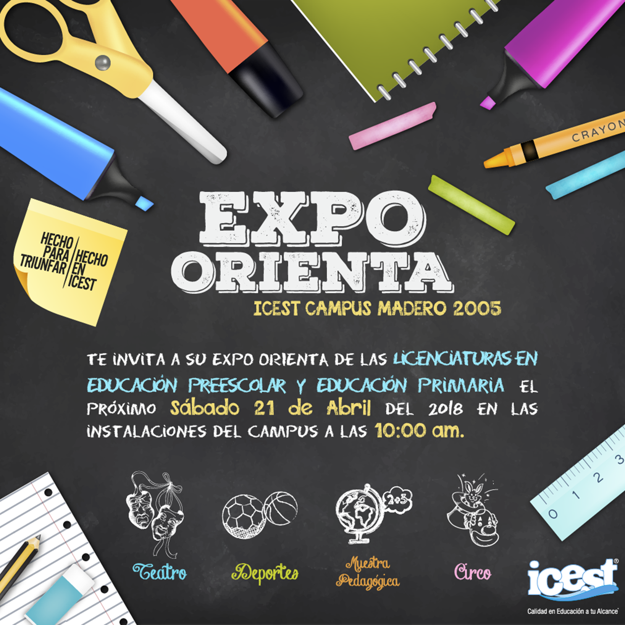 ICEST, te invita este 21 de Abril a la Expo Orienta, en Campus Madero, si te gustaría estudiar la Lic. en Educación Preescolar ó Educación Primaria, esta Expo te interesará.¡No te la pierdas! #SoyICEST #HechoparaTriunfar #HechoenICEST ⭐🎊🎈🎉