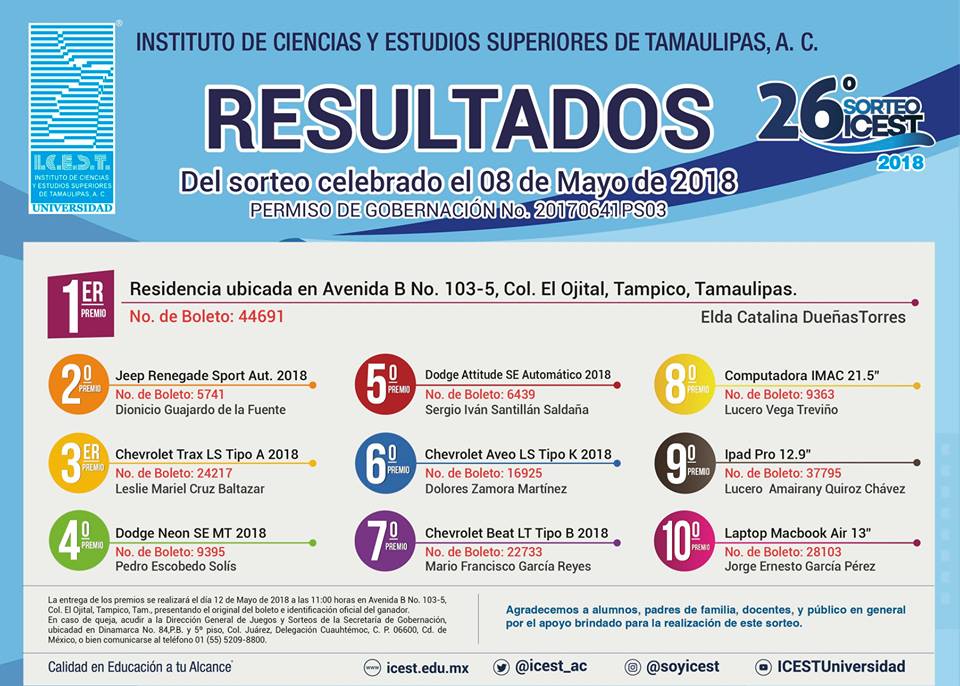 Conoce a los Ganadores de nuestro 26° Sorteo ICEST 2018 ...
