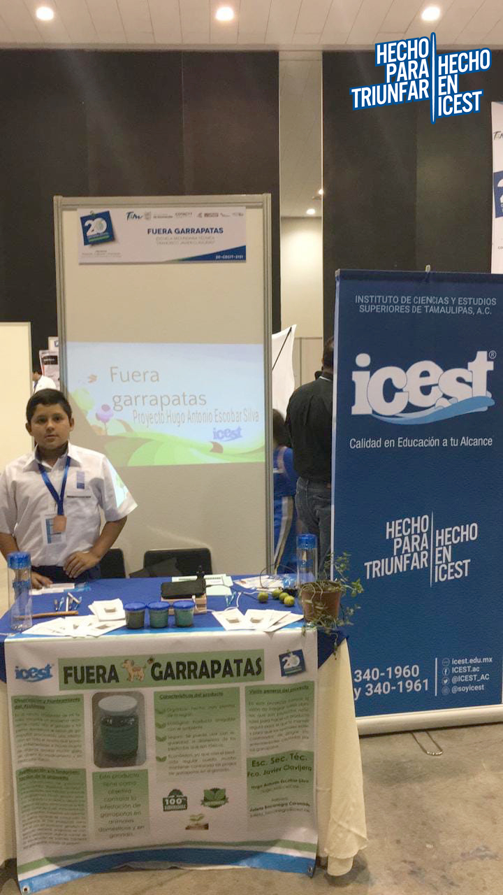 - El alumno Hugo Antonio Escobar Silva de la Sec. Téc. Francisco Javier Clavijero con su proyecto "Fuera Garrapatas" con el apoyo y asesoría del Director de Investigación Lic. Leoncio Cruz Gómez y la Lic. Julieta Bocanegra Coronado.
