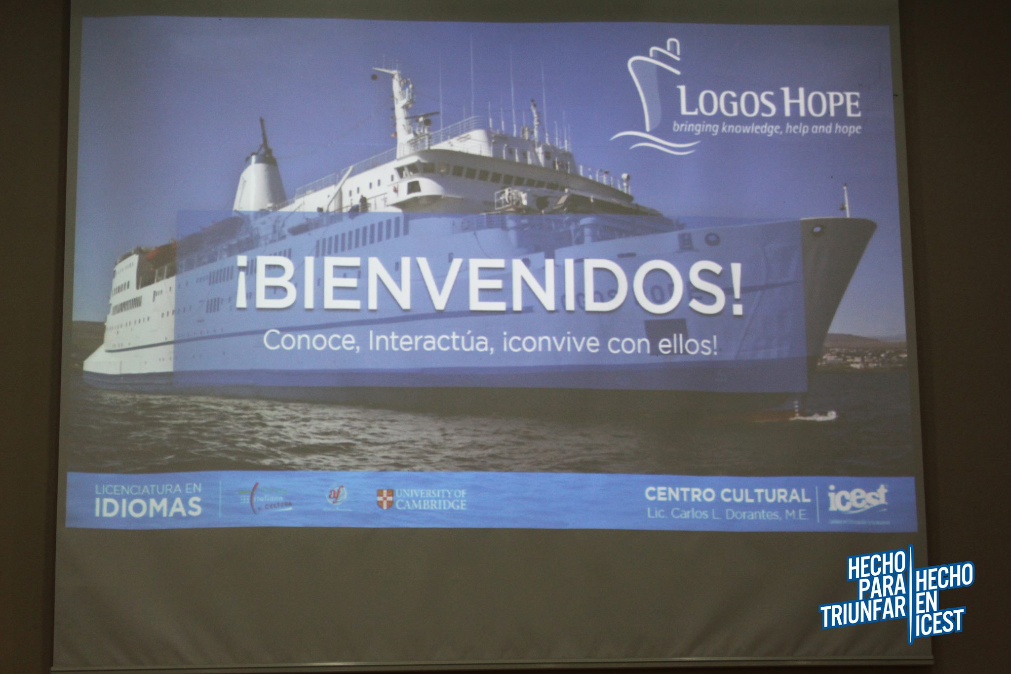 El pasado 13 de Junio la carrera de Lic. en Idiomas recibió en el ICEST Campus Tampico 2000 a la Tripulación de la Librería Flotante más grande del mundo "Logos Hope" ya que se encuentra de visita en Tampico. Los alumnos de las carreras de Lic. en Gastronomía, Lic. en Negocios Internacionales, Lic. en Turismo y los anfitriones la Lic. en Idiomas vivieron la experiencia de esta majestuosa embarcación en palabras propias y anécdotas de los tripulantes quienes son de diferentes nacionalidades.