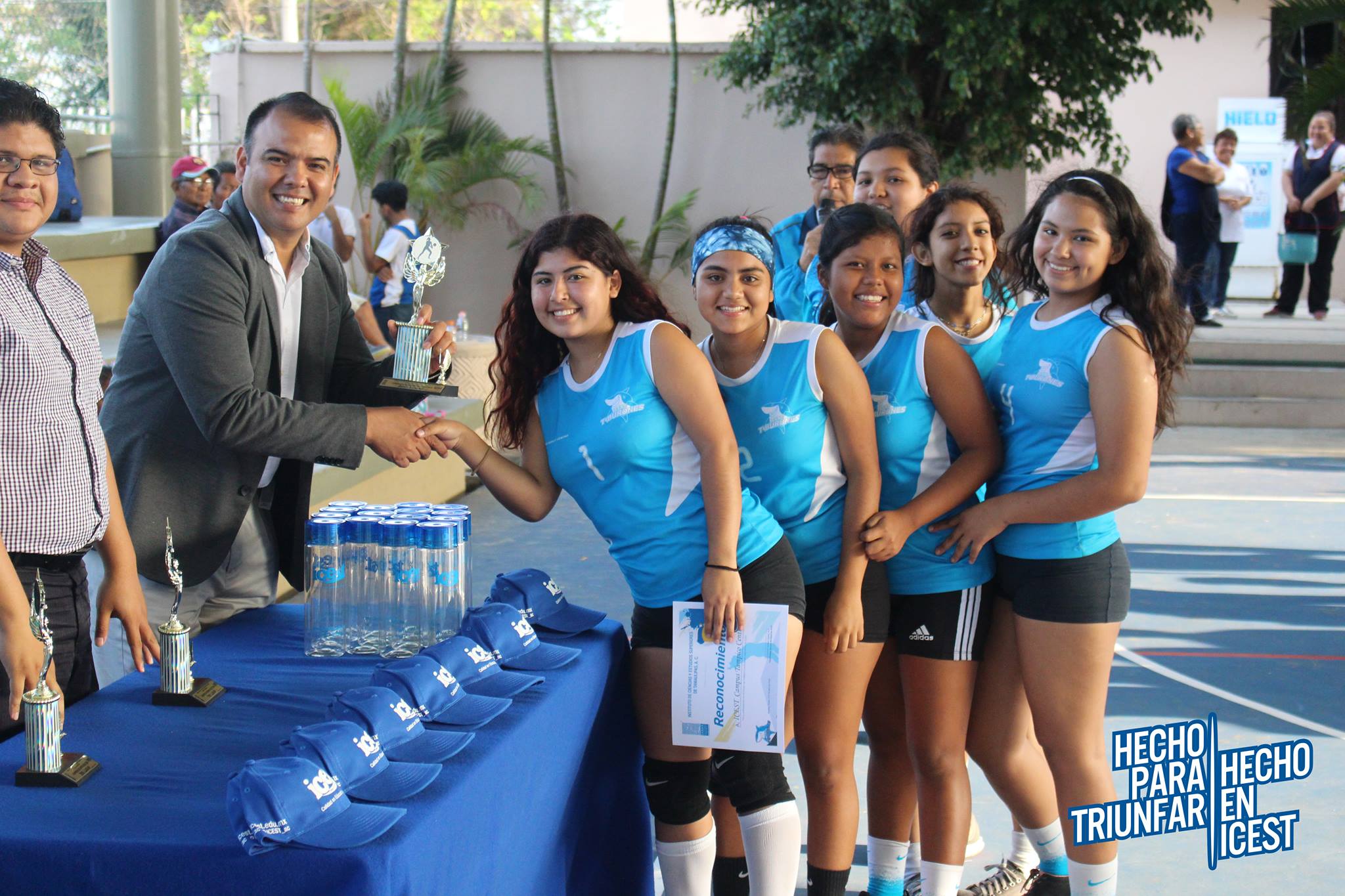 Posteriormente se llevó a cabo la ceremonia de premiación contando con la presencia del LIC. JONATHAN ORLANDO CORTEZ MORALES, Sub. Director del Icest Campus Tampico 2000, El C.P. ROLANDO SORIANO ZAPATA, M.E. Coordinador General de Deportes y Lic. OLAF ERWIN WETZEL GARCIA, Coordinador de Voleibol. Durante este evento de clausura se contó con la presencia de Tibu, la mascota oficial de ICEST, quien animó a los presentes. Un gran ambiente fue lo que se vivió cada viernes y en donde la asistencia de los padres de familia apoyando a sus hijos fue frecuente. Este evento fue llevado a cabo por la Coordinación de Voleibol con el apoyo de la Coordinación General de Deportes.